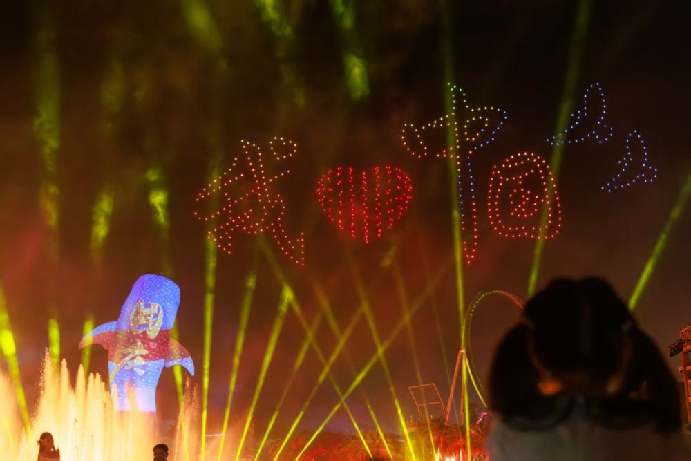 广东珠海长隆海洋王国推出特征光影秀,为游客献上了视觉盛宴——超600台无人机的编队变幻出企鹅、鲸鲨等珍稀海洋动物,结合绚烂的灯火投影以及赤色主题的节目编创,再加上珠海科技“特产”无人船,360度盘绕焰火作用……